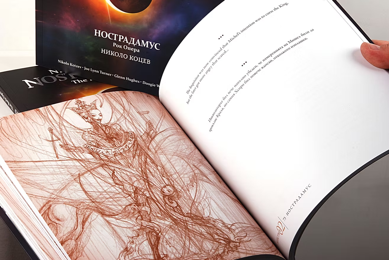 *Представянето на книгата с либрето на рок операта „НОСТРАДАМУС“ ще бъде съпътствана от откриването на изложбата NIKOLO KOTZEV’S „NOSTRADAMUS“ – THE ROCK OPERA във фоайето на Сити Марк Арт Център от 18:00 ч. и от премиерата на документалния филм на Николо Коцев – „THE MAKING OF NOSTRADAMUS“ от 19:00 ч.