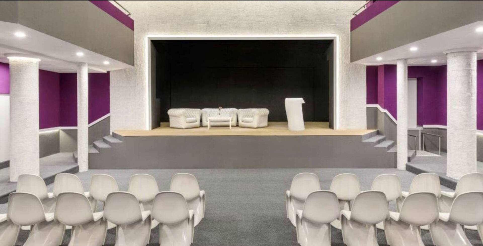 Амфитеатралният под на основната зала я прави изключително подходяща за: